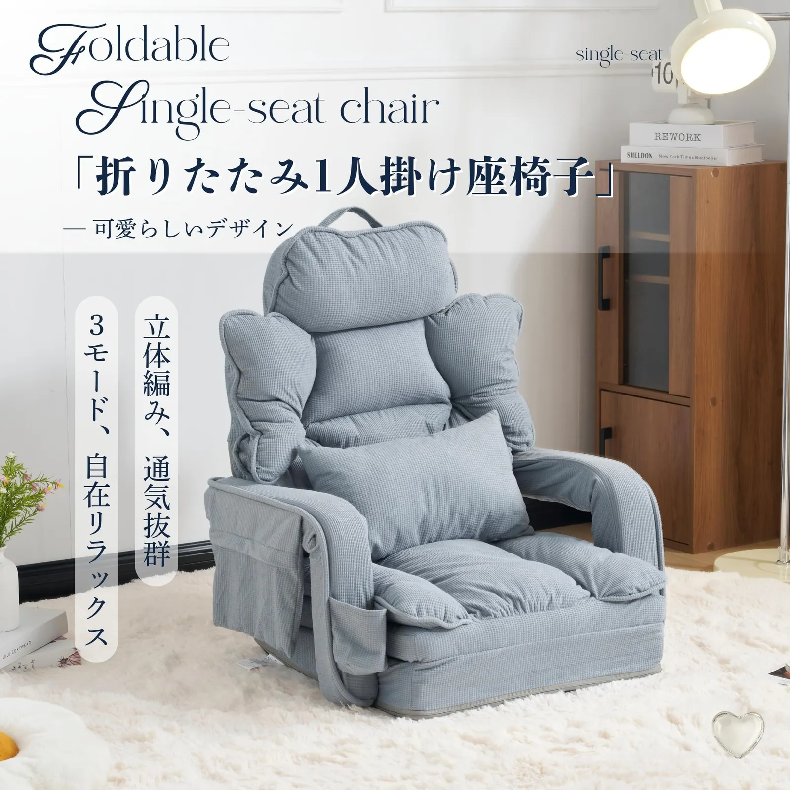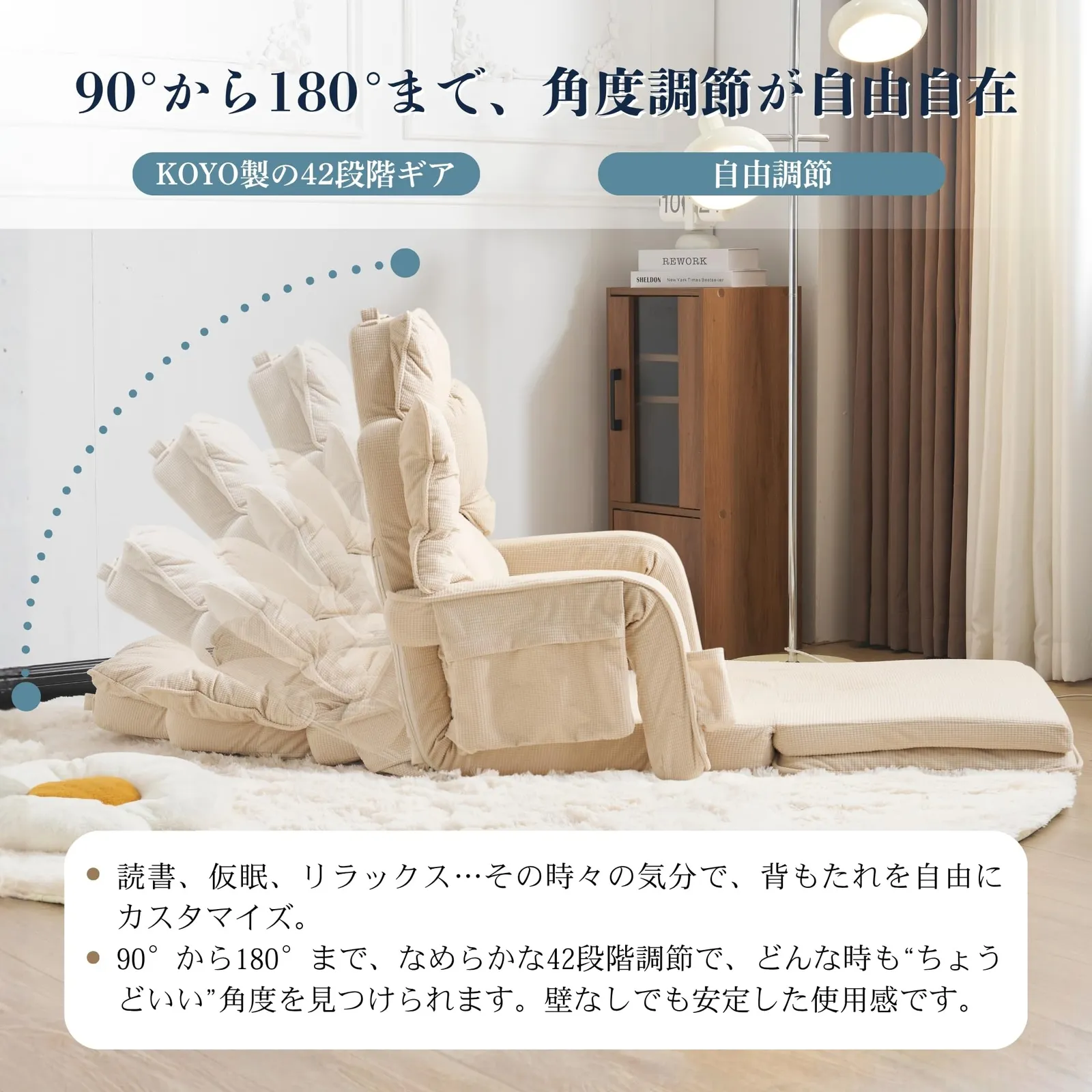 【4wayで使える座椅子】シーンや体勢に合わせて座椅子の形を変えられます。