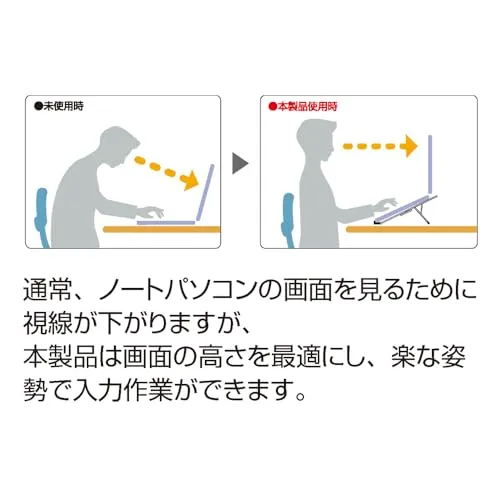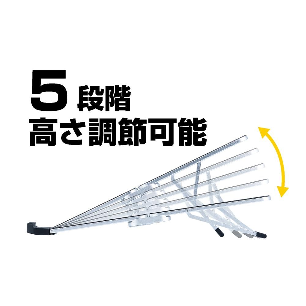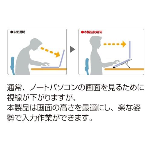 5段階の角度調節が可能で、ノートパソコンの画面を自分の目線に合わせることで姿勢を直し、肩こりや腰の負担軽減になります。