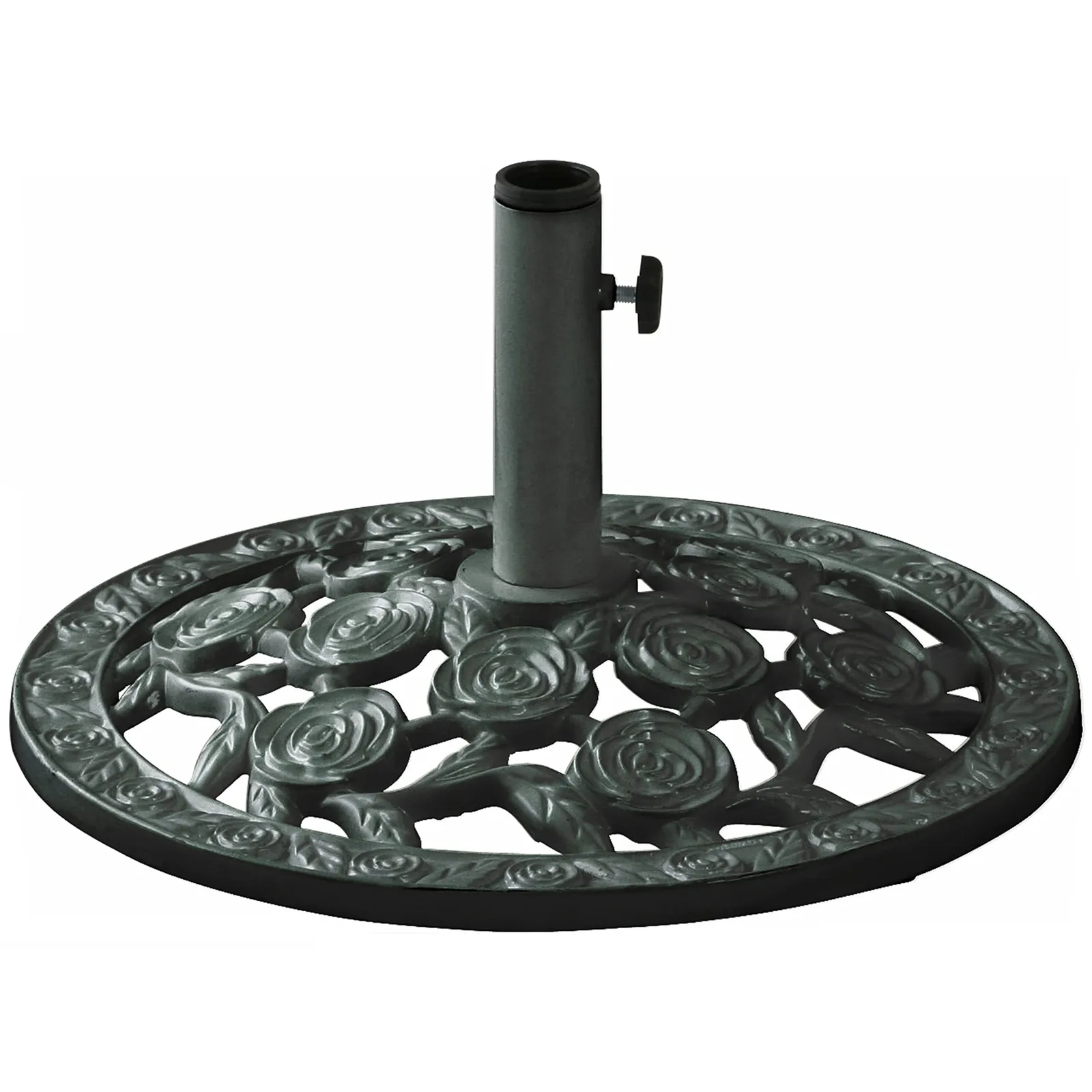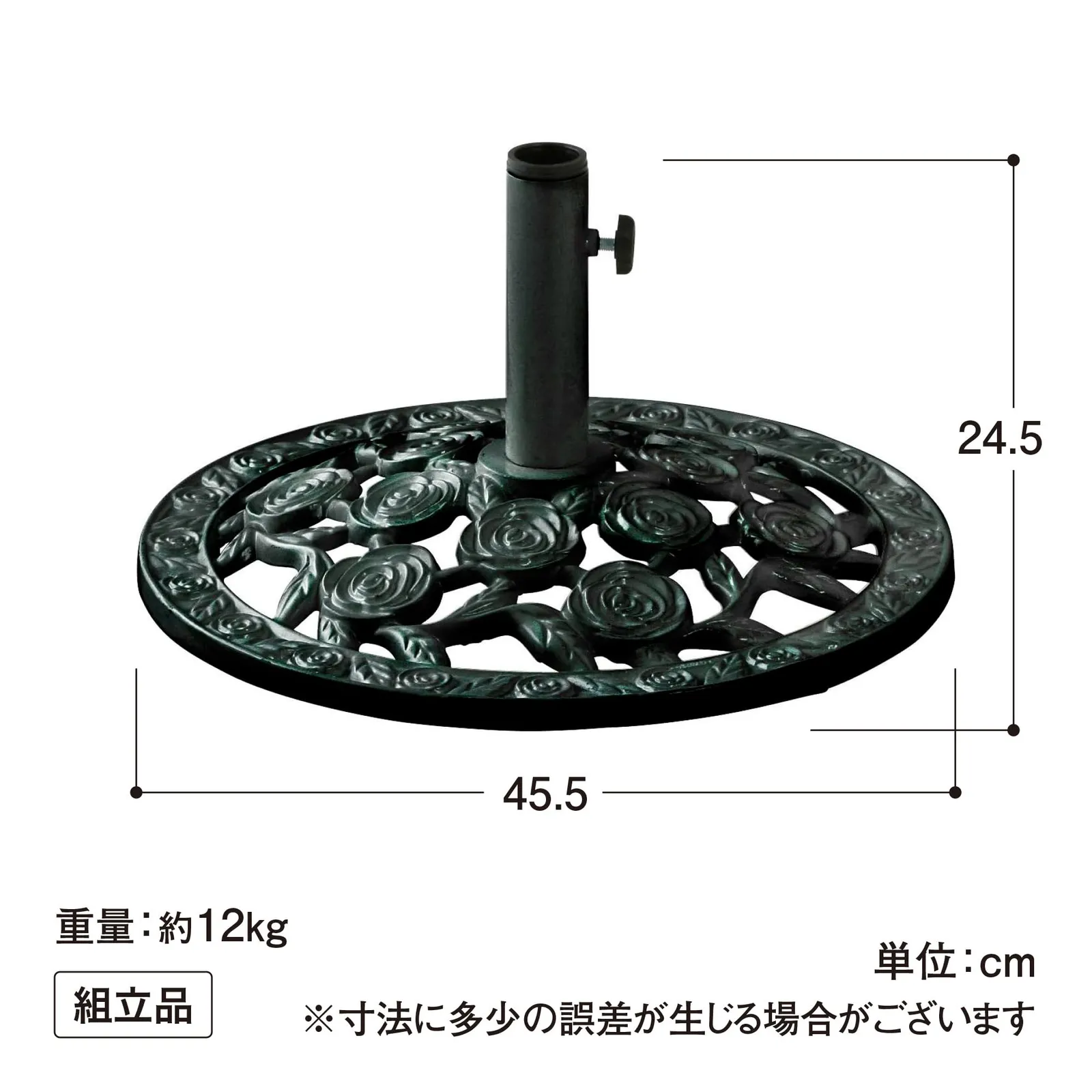 バラをモチーフにしたアンティークなデザインのパラソルベース。ローズ柄のファニチャーなので植物を引き立て、置くだけでもガーデンスペースを華やかに演出してくれます。