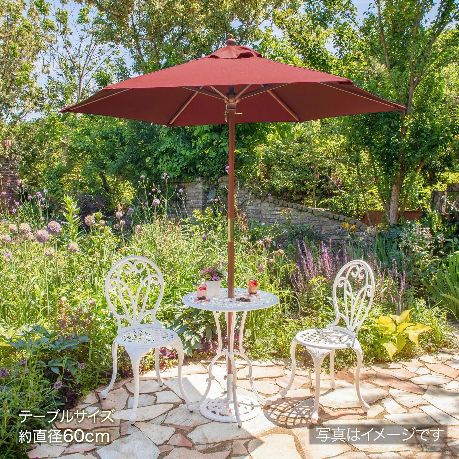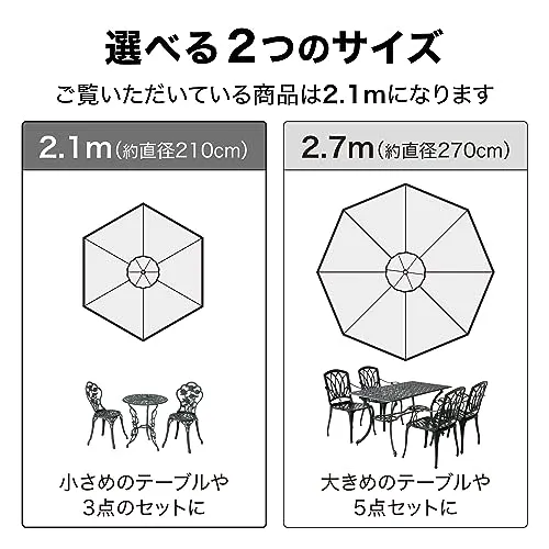 紫外線をしっかりカットし居心地のよい日かげをつくります。お庭のアクセントとしても。直径2.1mのコンパクトサイズで、カフェテーブルセットなどに合わせてお使いいただけます。