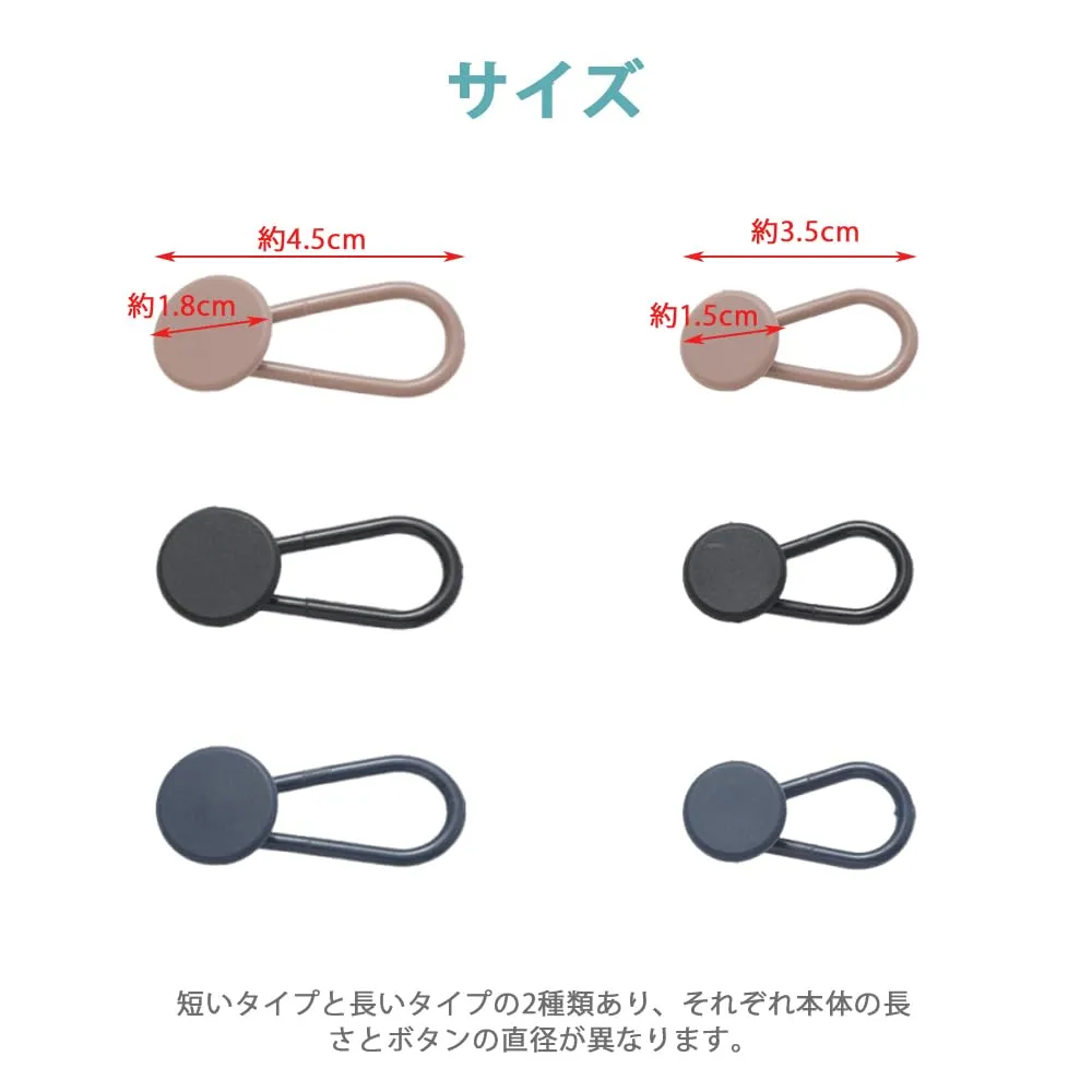 【サイズ】短いタイプと長いタイプの2種類あり、それぞれ本体の長さとボタンの直径が異なります。短いタイプ :本体長さ約3.5cm、ボタン直径約1.5cm。長いタイプ:本体長さ約4.5cm、ボタン直径約1.8cm。