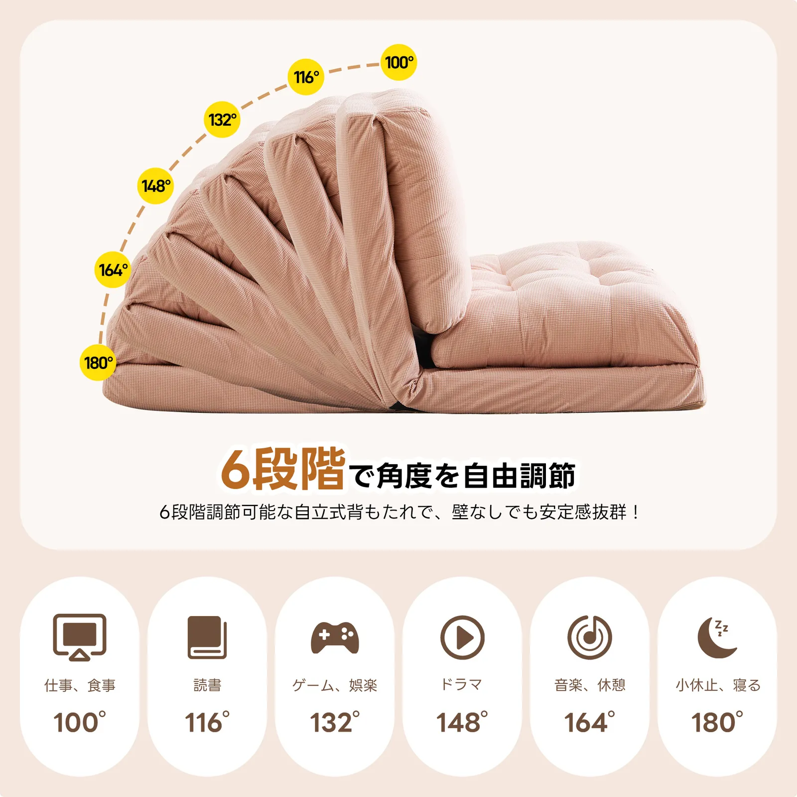 ・自分だけのお好みの角度調節で、オリジナルのくつろぎスペースを作れる。