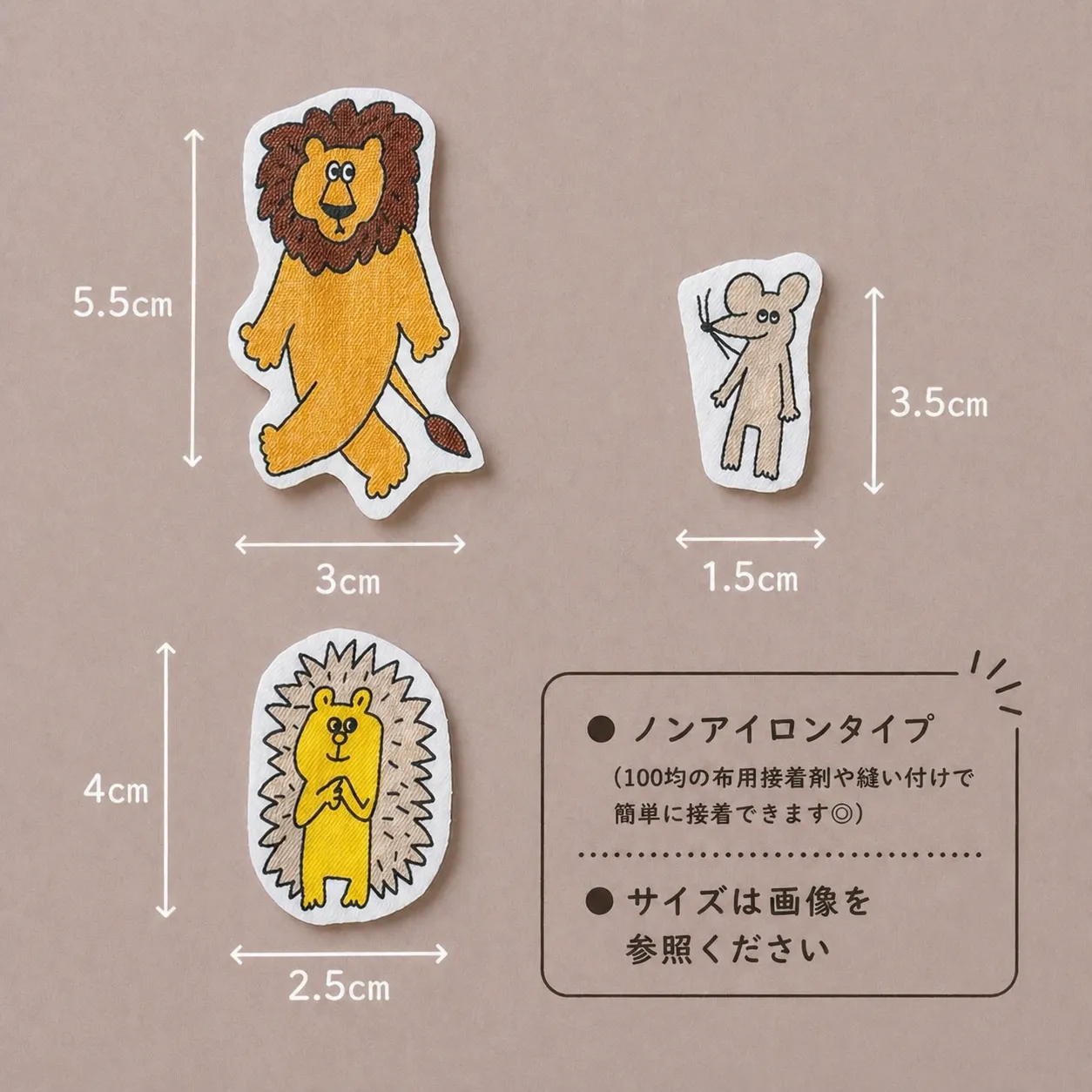 ●アイロン接着シートが裏にないため縫い付けか布用接着剤など使用してください