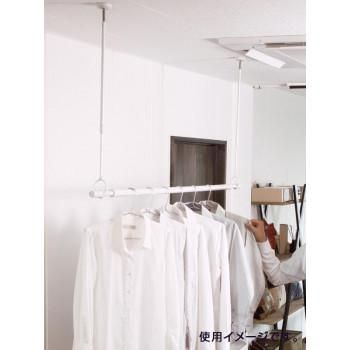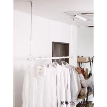 天井から吊り下げて使用する室内物干。天井に付けた台座からポールが取り外せるので、使わない時はスッキリ!簡単操作で伸縮可能です。