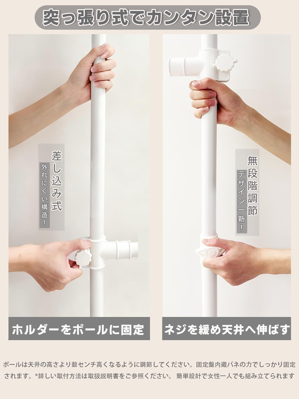 【安定性抜群・ 組立かんたん】32mm極太パイプ使用で耐震転倒防止。説明書改良、組み立て参考動画もあり!固定ネジを回して取り付けるだけで、場所に合わせて横幅・高さを無段階調整可能