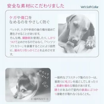 機能をさらに使いやすく。面ファスナー機能搭載。ケガや手術後に、傷口をなめたりひっかいたりする事をやめさせ、悪化をやさしく防ぎます。ソフトなポリエステル素材なので、装着したまま寝転んでも安全!リラックスでき、ストレスを軽減できます。