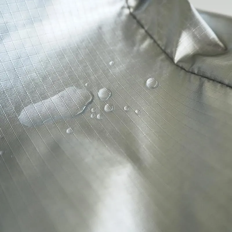 撥水性のあるリップストップ生地を使った巾着バッグは、天候に左右されずおしゃれが楽しめます。