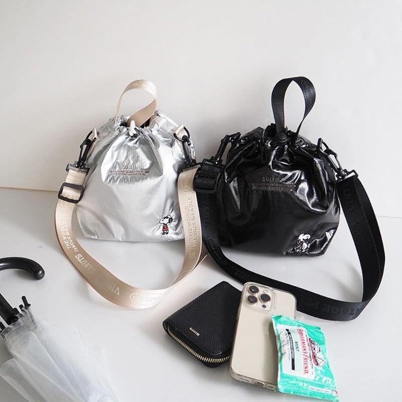 【新品】 [HEMING'S INC.] PEANUTS ピーナッツ 撥水 ショルダーバッグ 巾着 ドロースリング PN/SOLEIL 撥水ショルダー 10948 (02. SILVER)