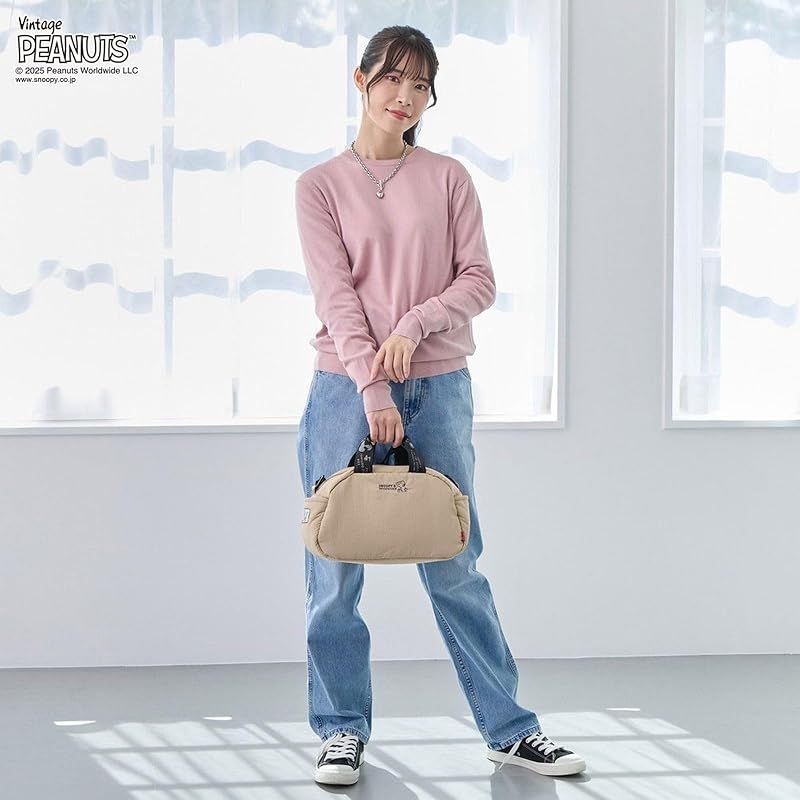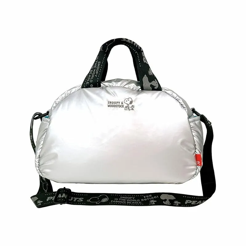 【新品】 [ルートート] スヌーピー 刺繍 ふわふわ ショルダー付 ミニボストン 2Way IP デリ パデット ピーナッツ-0S 8455 (02 シャイニーシルバー)
