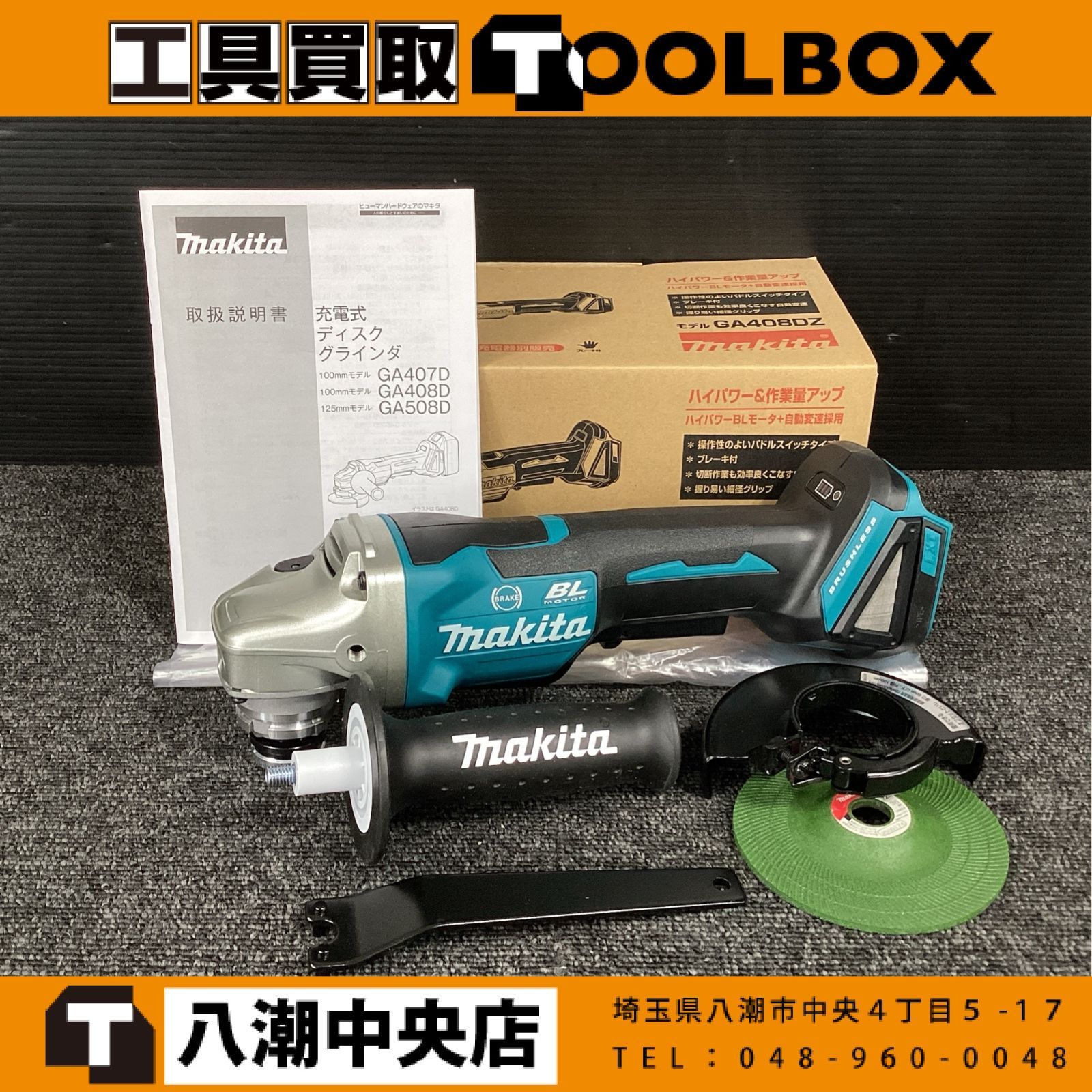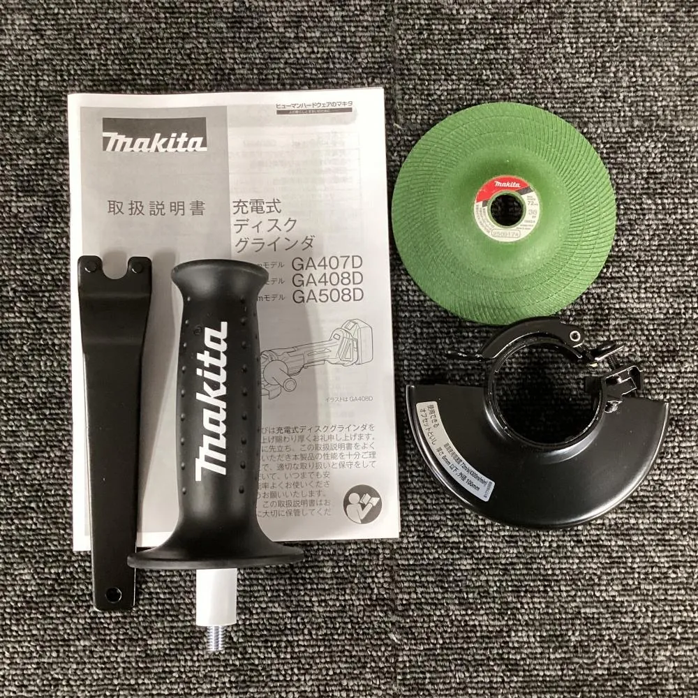 ご覧いただきありがとうございます マキタ/makita GA408DZ 100㎜ 18V 充電式ディスクグラインダ です 状態:未使用 店頭販売品の為、本体や箱に細かい傷や汚れがございます 写真に写っているものが全てです 本体+サイドグリップ+ホイールカバー 研削砥石+ロックナットレンチ 説明書+ケース 外装等は画像をご確認いただき是非ご検討よろしくお願いいたします 店頭併売も行っておりますので品切れの際はご了承ください