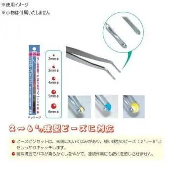 2mmから6mmのビーズをしっかりとキャッチできるピンセットです。