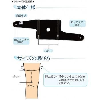 左右兼用の膝関節バンドです。側面の樹脂ステーにより重心動揺を抑制します。肌側素材はパイル地のため、肌触りが良く、ムレを軽減します。