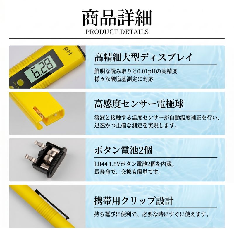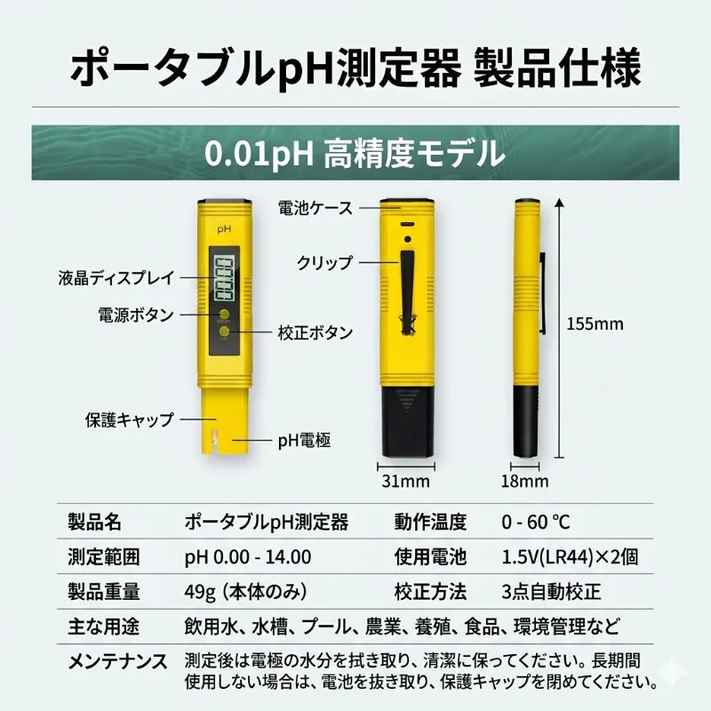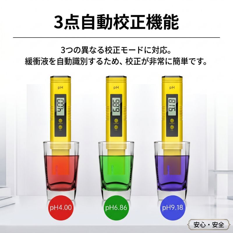 0.01の高精度で水質を徹底管理!自動温度補正&3点自動校正で初心者でも簡単測定。アクアリウムから水耕栽培まで幅広く対応!