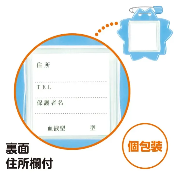 裏面には住所や連絡先を記入できる欄付きで,万が一の際にも安心な設計です