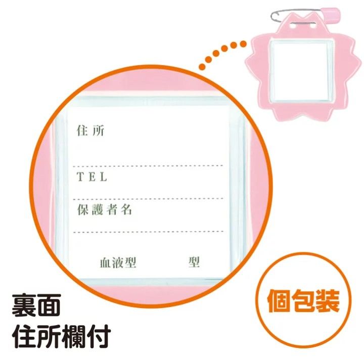 安全ピン付きで衣服への取り付けが簡単に行え,学校行事や日常使いにおすすめです