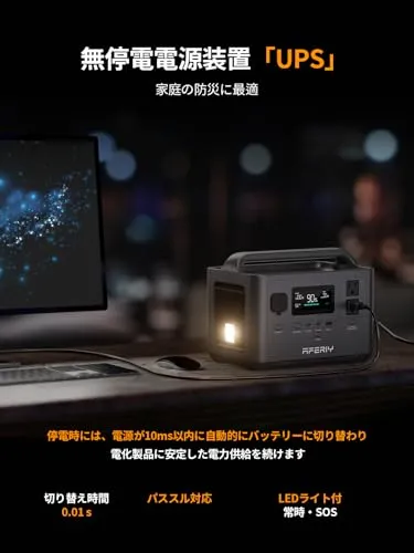AFERIY Nomad400 ポータブル電源 256Wh ぽーたぶる電源 リン酸鉄 70分満充電 400W安定出力 6出力ポート AC/USB/シガーソケット 十年長寿命 小型 非常用電源 ポータブルデンゲン バッテリー UPS機能10ms 静音設計 純正弦波 100V110V 50Hz 60Hz ソーラー充電対応 家庭用 キャンプ 車中泊 停電対策 地震台風 防災グッズ 防災協会推奨shun