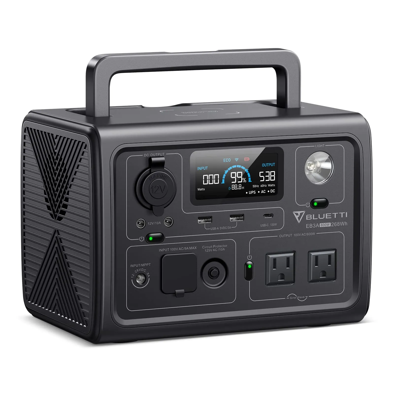 BLUETTI ポータブル電源 EB3A 268Wh/600W APP遠隔操作 EPS機能付き 電力リフト機能付 エコモード機能搭載 リン酸鉄リチウム 純正弦波 MPPT制御方式採用 家庭アウトドア両用バックアップバッテリー キャンプ/車中泊/防災グッズ LEDライト付き ソーラー充電 AC100V 50Hz/60Hz対応shun