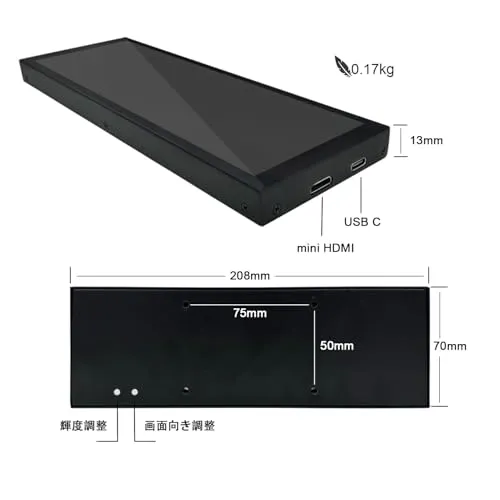 【パッケジ内容】モバイルモニターx1 HDMI 対 ミニ HDMI ケーブルx1 マイクロ-USB(2A,5V) 対 USBA ケーブルx1(ご注意:このモニターはスピーカが付いてなく、タッチもできません。)