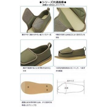 わずかな段差や滑りやすい床での転倒を予防する室内専用シューズです。履きやすく履かせやすい面ファスナー式。中敷の滑り止め加工により足のズレを予防します。底面には3か所の滑り止めがあります。