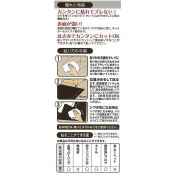 フローリングの床の上から簡単に貼れて、自分にあったイメージに変えることができるシートです。裏面の微粘着加工で、掃除機をかけてもズレません。はがす時はのり残りもなく、キレイにはがせますので賃貸の方でもご使用いただけます。はさみで自由にカットする事ができますので、お好みの場所にピッタリと敷き詰め可能です。女性でも簡単に貼ることができますので、DIY女子にもおすすめ!!