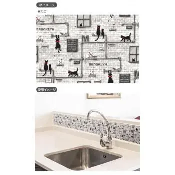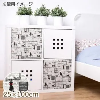 商品名:貼ってはがせる デコタイルシート ねこ 25cm×100cm グレー(GY) DGT-03