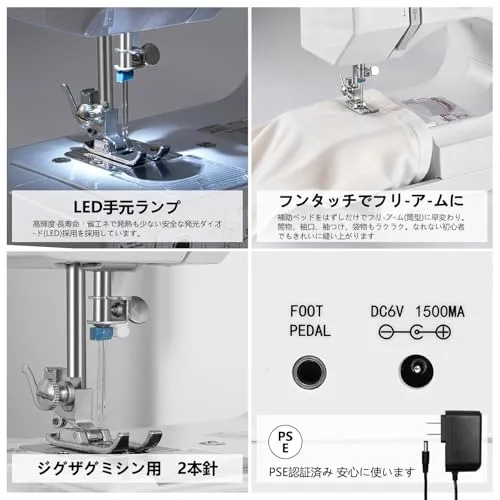 【フリーアーム仕様】:袖口やズボンの袖などの筒縫いにも便利!このミシン1台でジグザクに縫うこともでき、穴かがりなどをすることもできるので、シンプルだけど、必要な機能があなたをサポート!