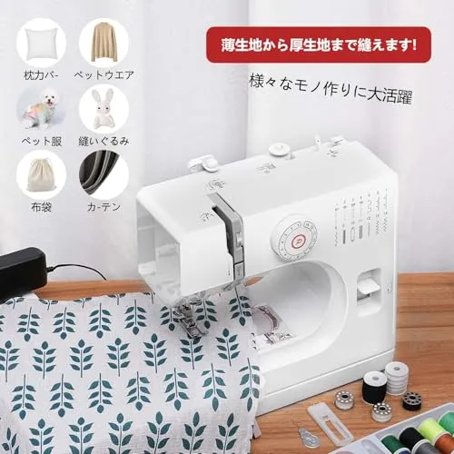 【実用縫いに便利】:幼稚園の入園グッズ作りや裾上げなど、家庭でちょっとしたモノを作る際に活躍するミシン。子育て中のお宅でも使いやすいよう考えられているのが特徴。お気に入りの布を使えるので、自分だけのオリジナルな作品作りに可能。