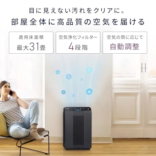 【31畳対応のパワフル清浄】 広範囲の空気を効率良く清浄できるので、リビングや寝室など、様々なお部屋で活躍します。お好みに合わせて、低速・中速・高速・ターボの4段階でファン速度の調整が可能です。