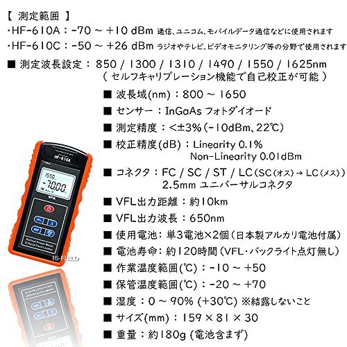 【 HF-610A 】測定範囲: -70 ~ 10 dBm (通信、ユニコム、モバイルデータ通信などに使用されます)