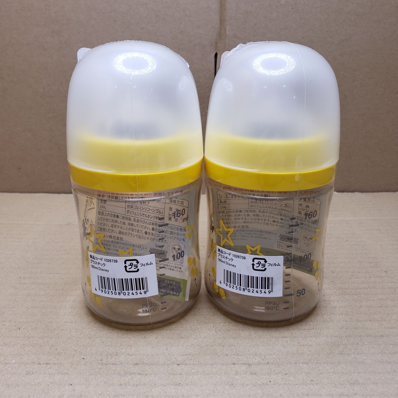 PIGEON ピジョン 母乳実感 哺乳びん 160ml 0ヵ月~ 上質なプラスチック Disney ディズニー 2本