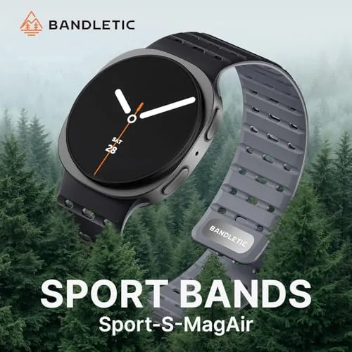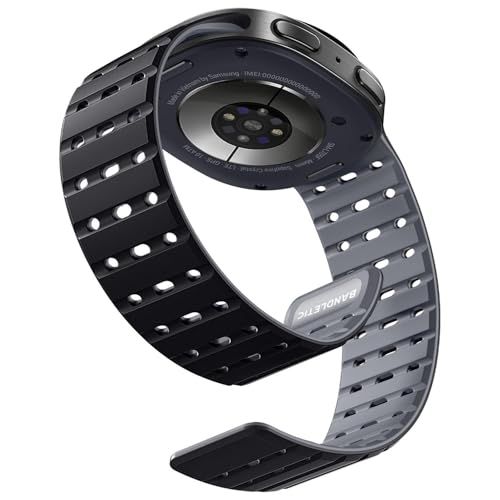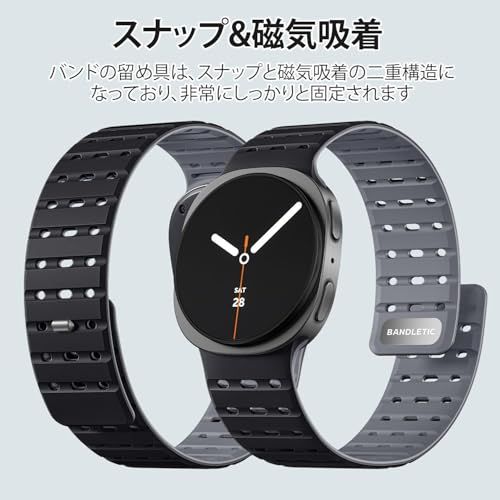 [Bandletic] Galaxy watch 8 バンド - マグネット式 シリコンバンド Watch 8 44mm 40mm/ Watch 8 Classic 46mm に対応 N52磁石 通気性 耐汗 防水 軽量 男女兼用 交換用バンド ブラック/グレーshun
