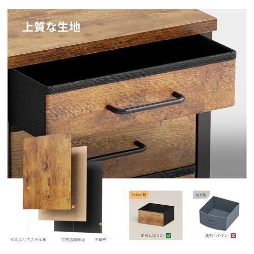 【温かみのあるデザイン】布制のキャビネットに金属のシンプルな取っ手と質感のある木制の天板を組み合わせました。シンプルなデザインと落ち着いた色合いで、単体の使用でも違和感なくインテリアになじみます。オフィスや寝室、リビングなど、さまざまな場所で使用できます。