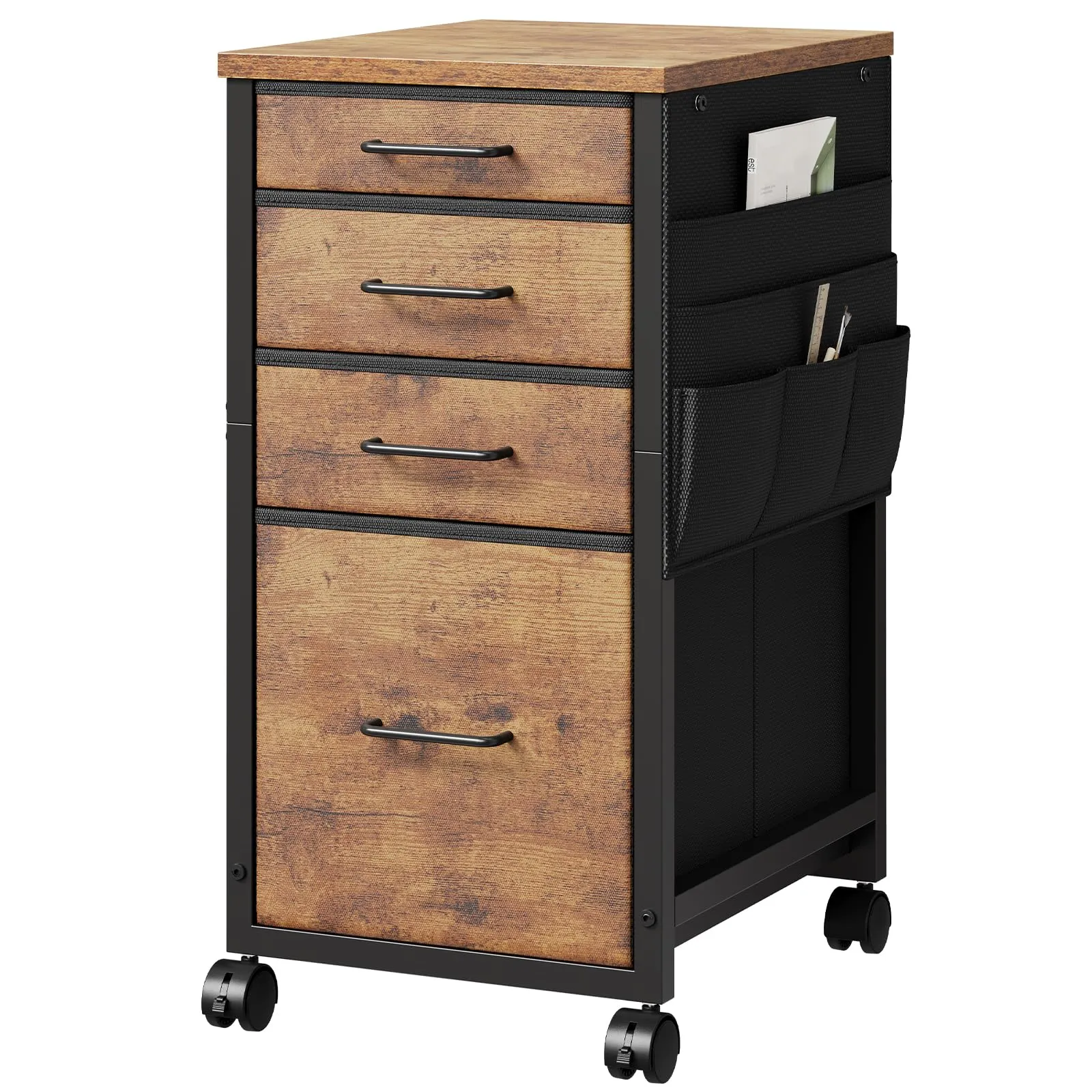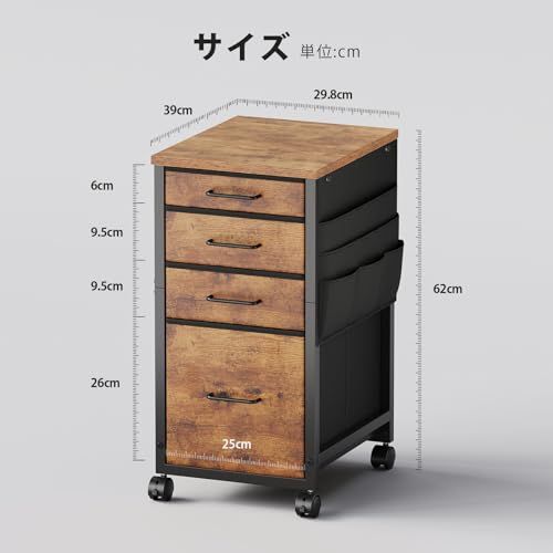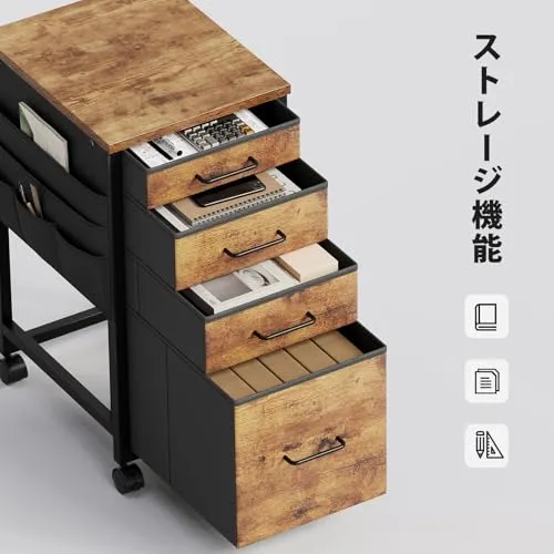 【4段収納】引き出しが4段付き、用途で使い分けられるので細かいファイル整理が可能です。1段目、2段目はA4ファイルが横向きでゆったり入るサイズで、浅めな設計なので文具などの小物も取り出し簡単です。3段目と4段目は深い引き出しになっていますので、分厚い書類を入れることができます。効率よく整理できる同時に、充分な作業スペースも保証します。