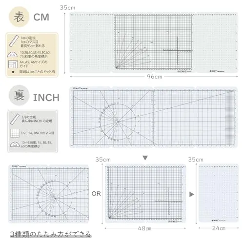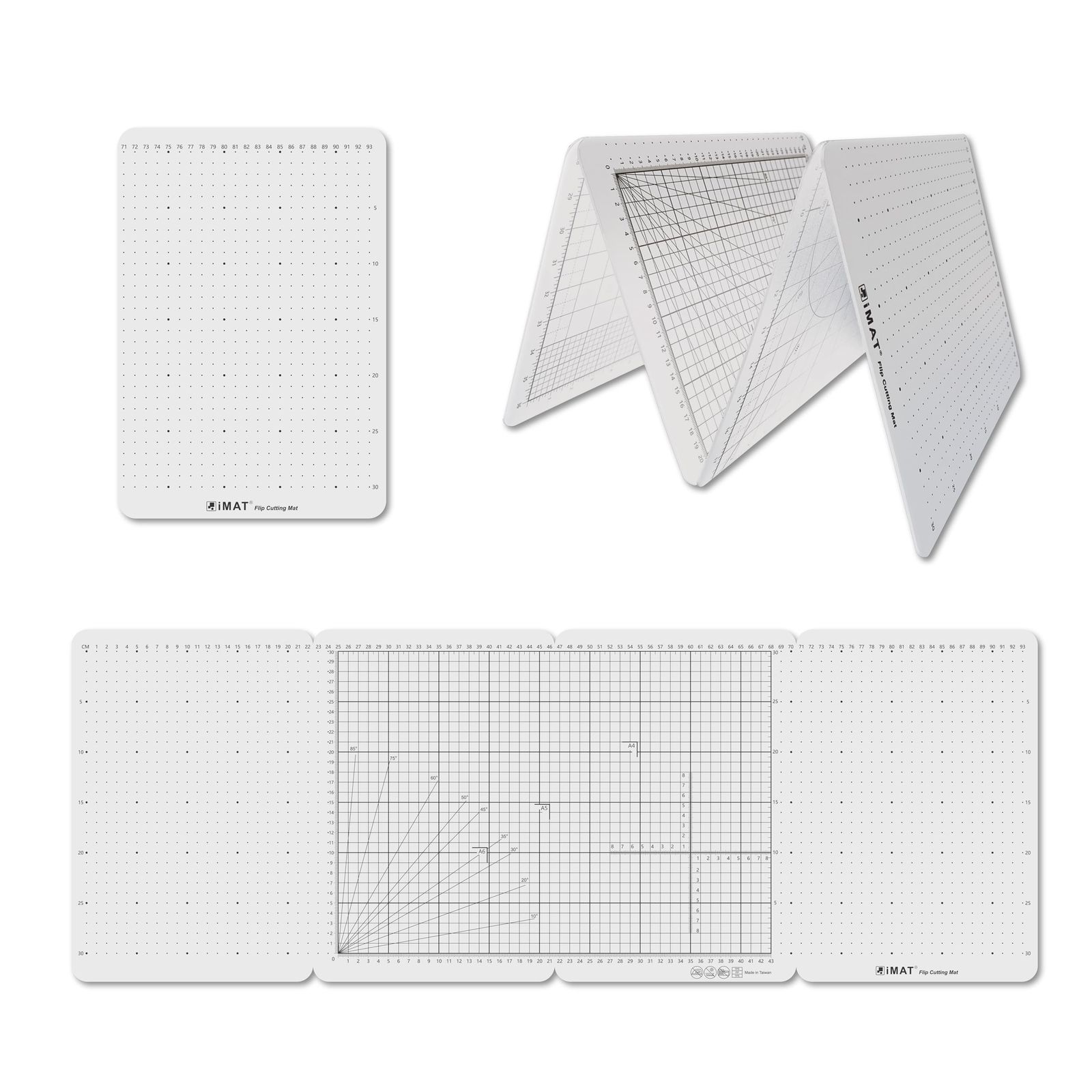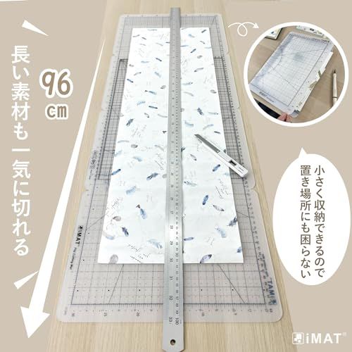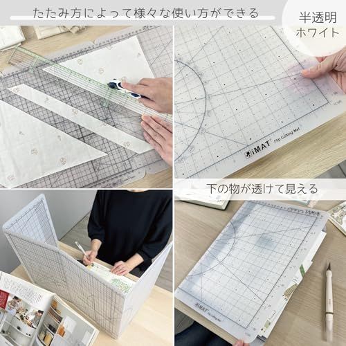 iMATフリップカッティングマット Mタイプ 両面仕様 TPE製 折りたたみ カッティングマット(半透明白)AR