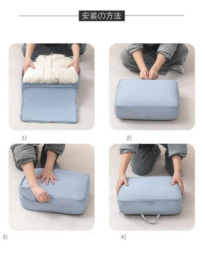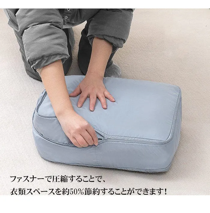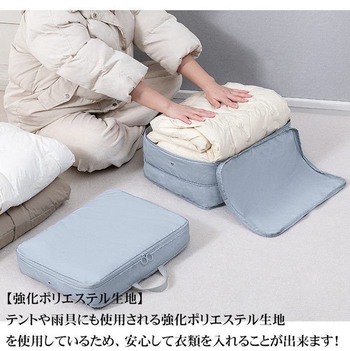 品番:muzi05 カラー:ピンク(M+L)、ブラック(M+L)、ダークグレー(M+L)、ライトグレー(M+L)、ベージュ(M+L) サイズ M :横:40cm 縦:30cm マチ:12cm(圧縮前)収納力:1点ロングダウンコートもしくは2点ショートダウンコート L :横:40cm 縦:30cm マチ:18cm(圧縮前)収納力:2点ロングダウンコートもしくは3点ショートダウンコート