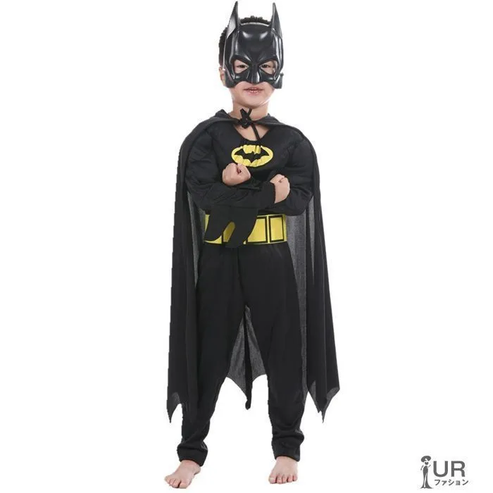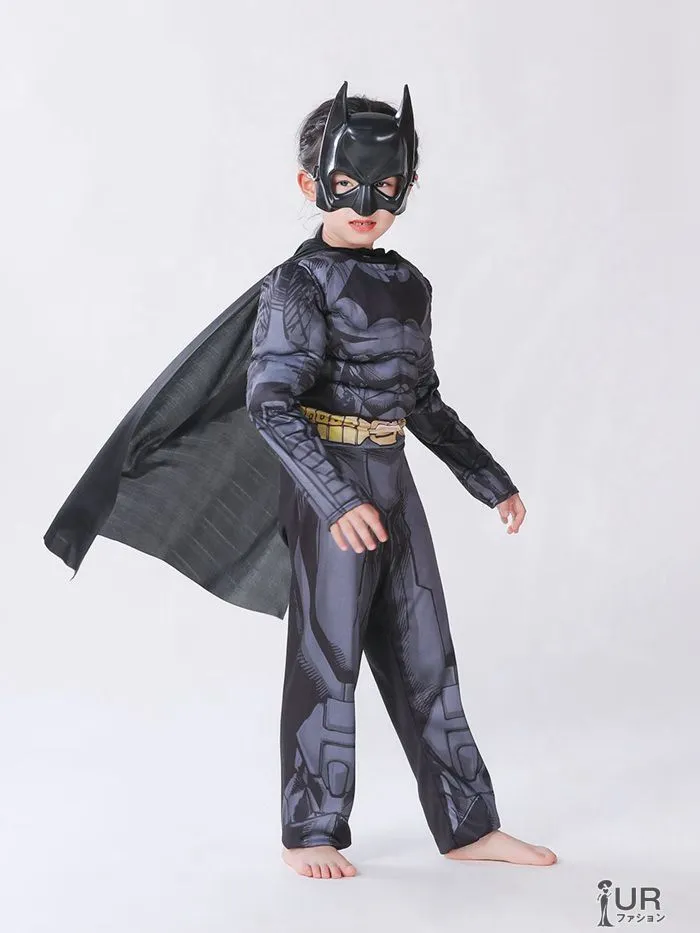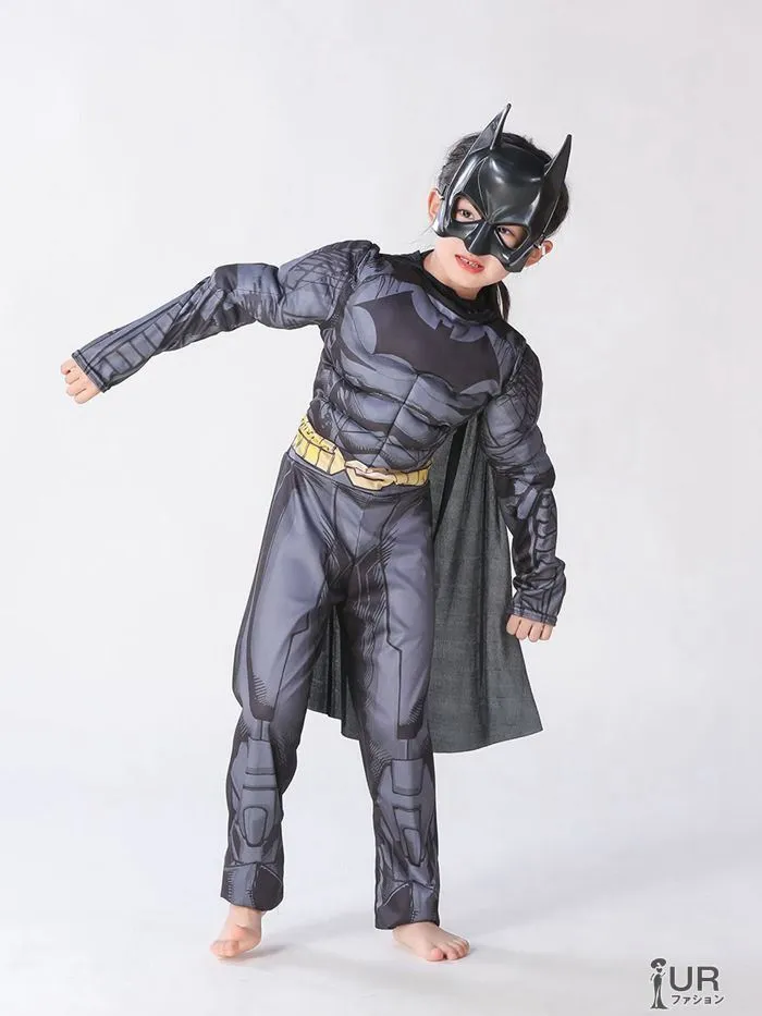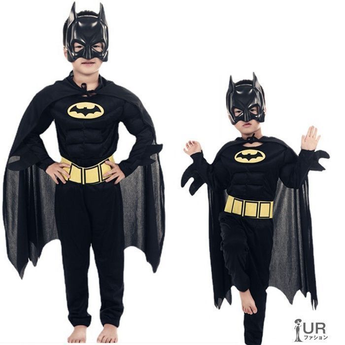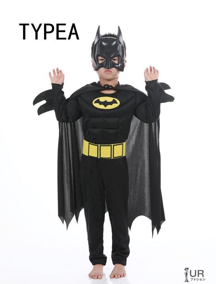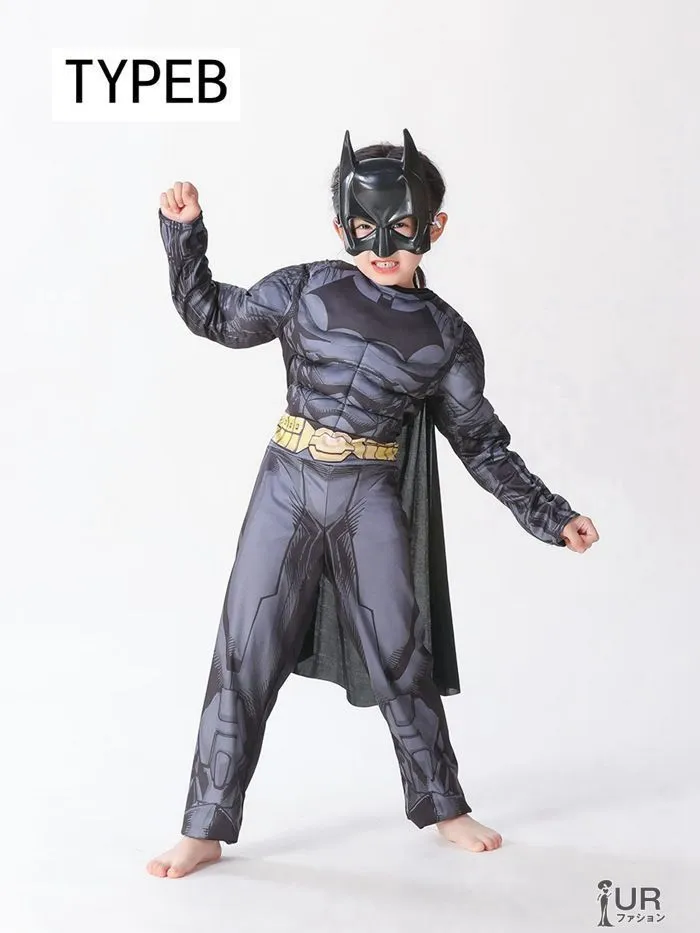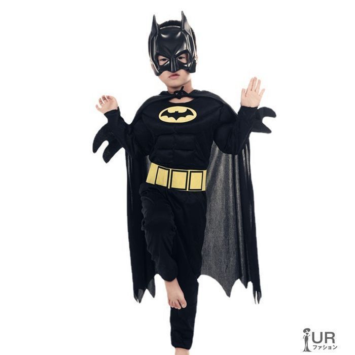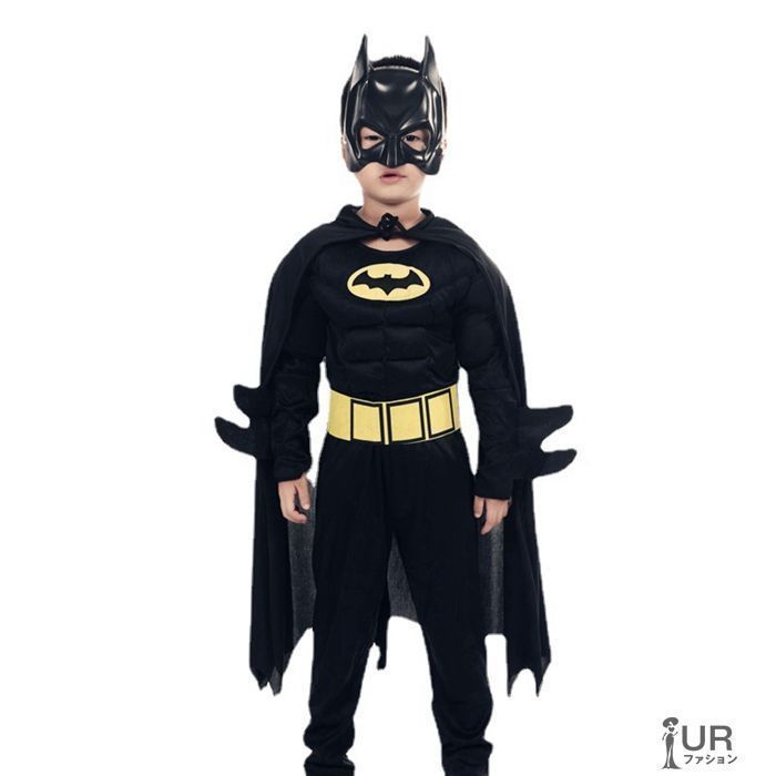 ハロウィン コスチューム キッズ 3点セット 子供 男の子 お面付 マント付き かっこいい マッチョ バットマン 筋肉服 バットマン コスプレバットマンコスチューム オールインワン 新年会 忘年会 コスプレイベント仮装 学園祭文化祭仮装