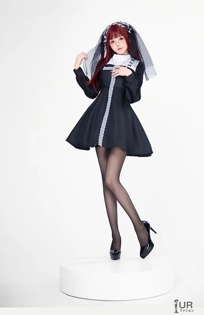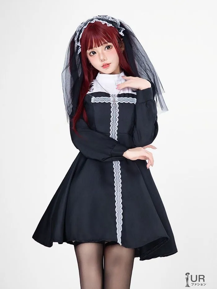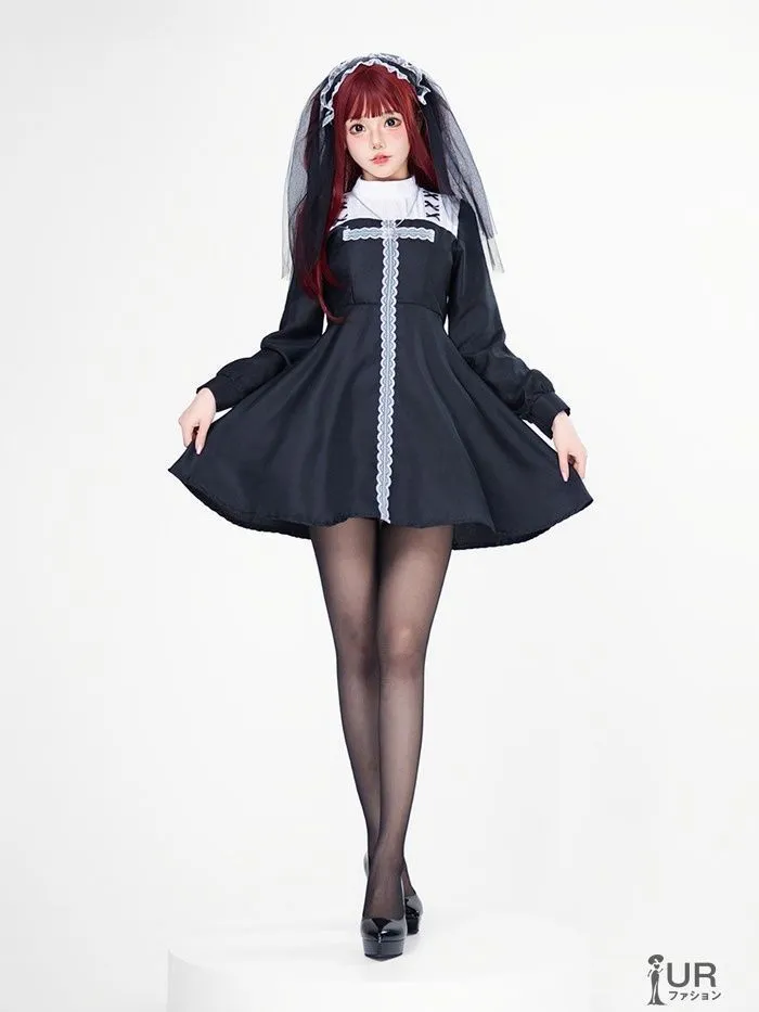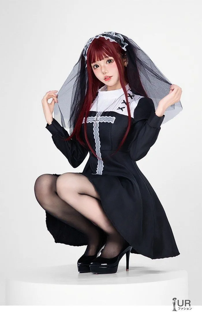 シスター コスプレ ハロウィン 巫女 十字架 3点セット レース 衣装 セクシー コスチューム 仮装 レディース かわいい 可愛い 大きいサイズ セット イベント パーティー 女性 大人 おしゃれ