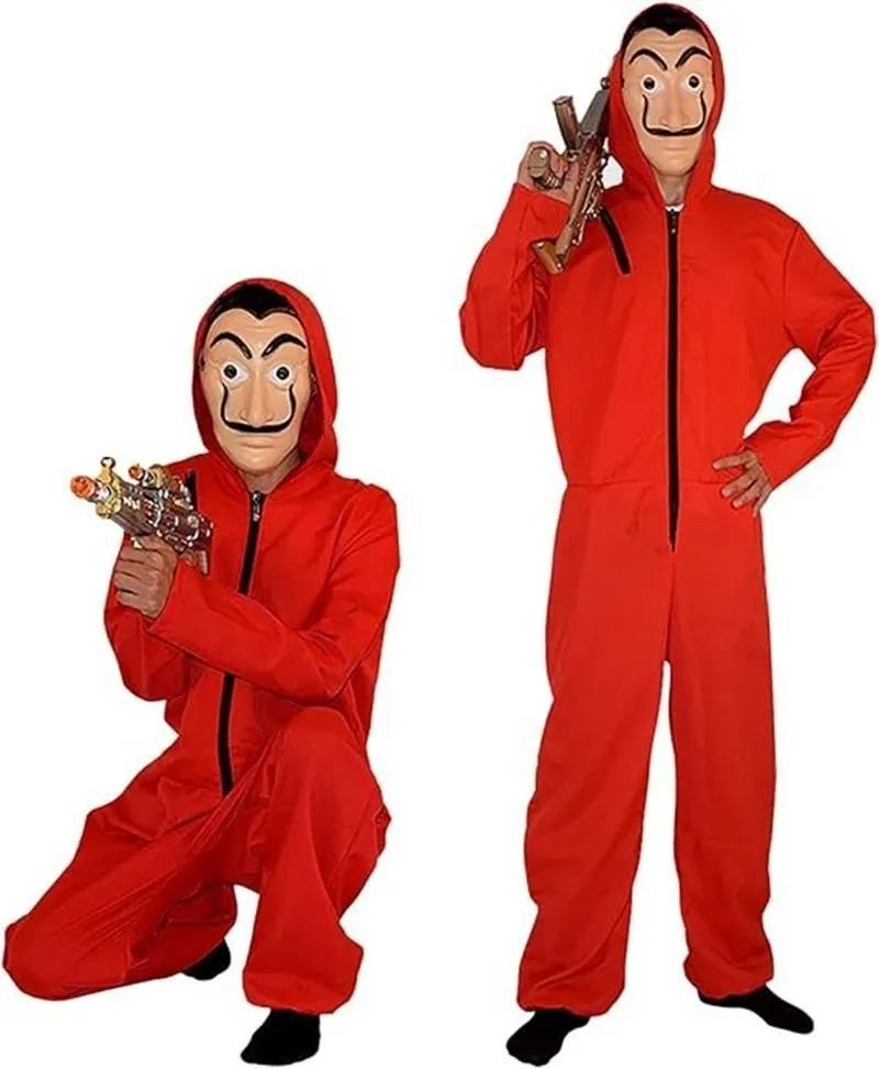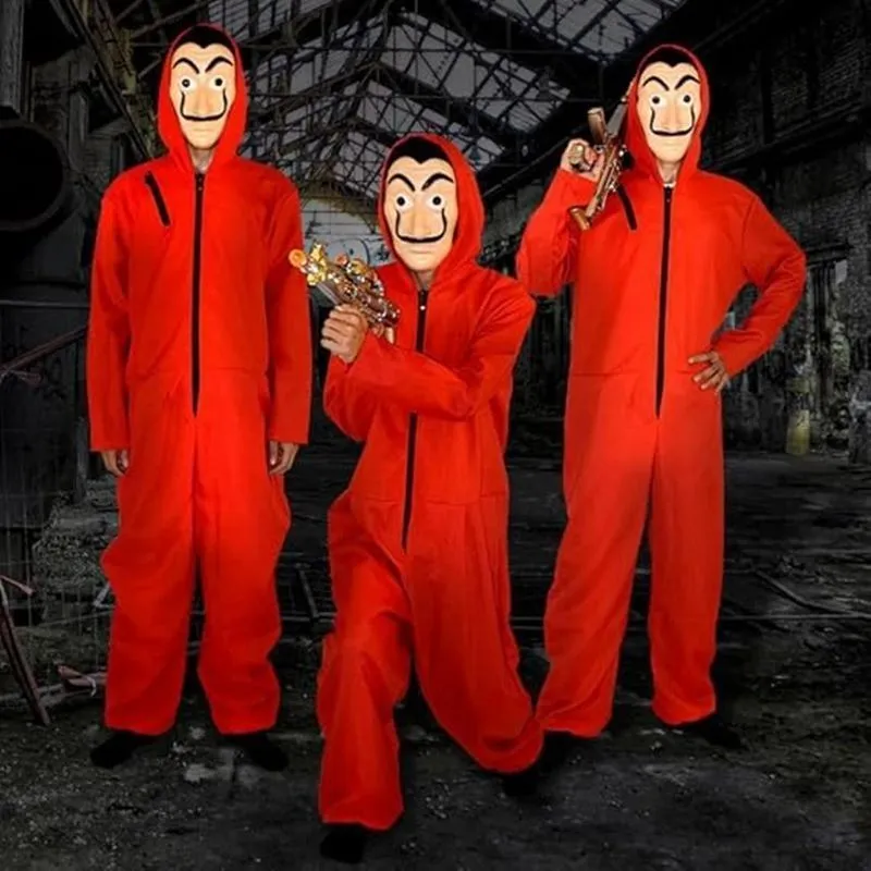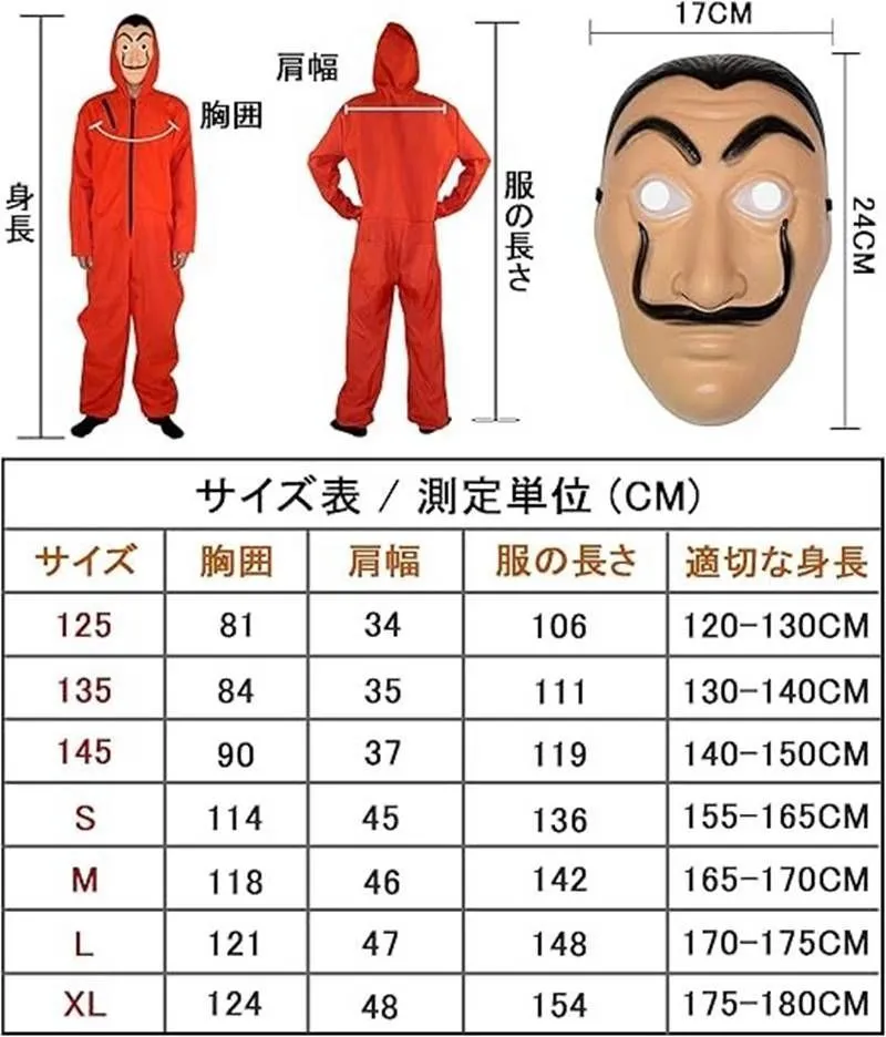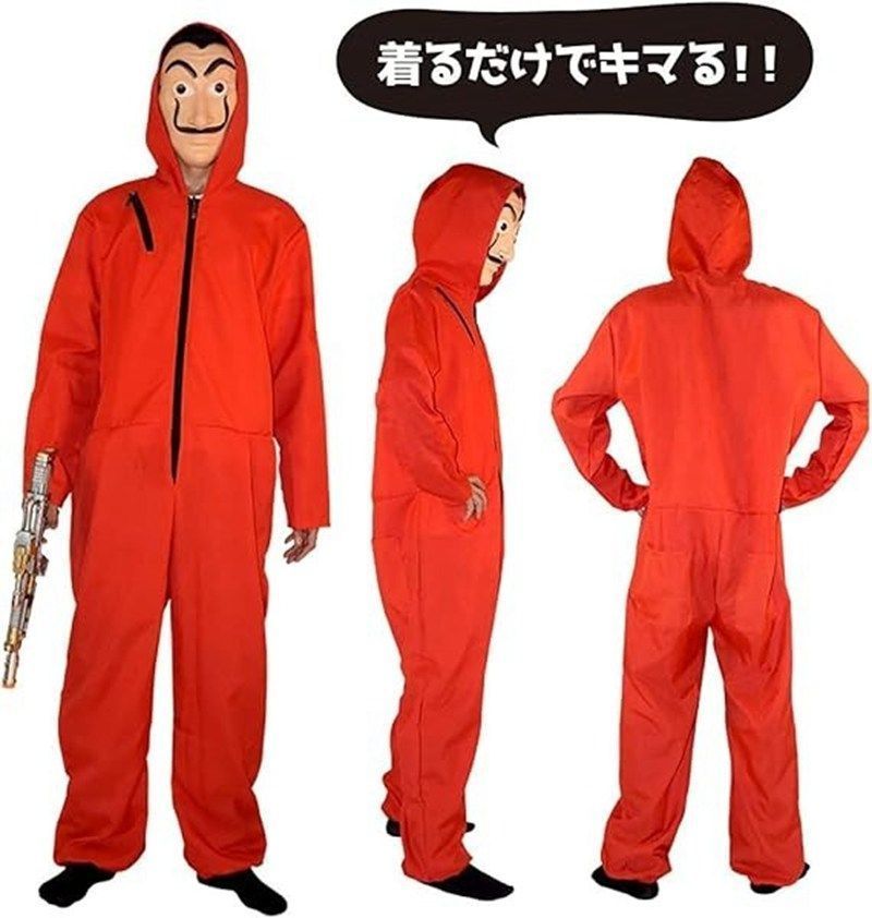 ペーパーハウス コスプレ マスク付 つなぎ服 ハロウィン 仮装 身長120?180? 大人と子供兼用/男女共用 ハロウィン イベント コスチューム 舞台演出服 学園祭 文化祭 クリスマス仮装 コスチューム xzzhang688