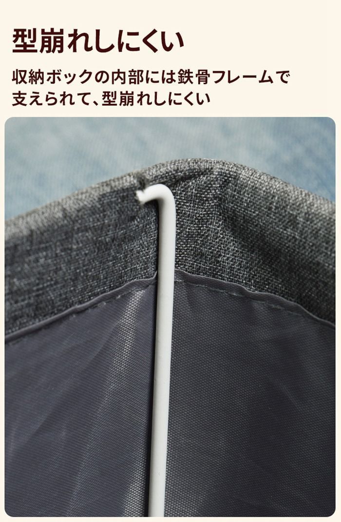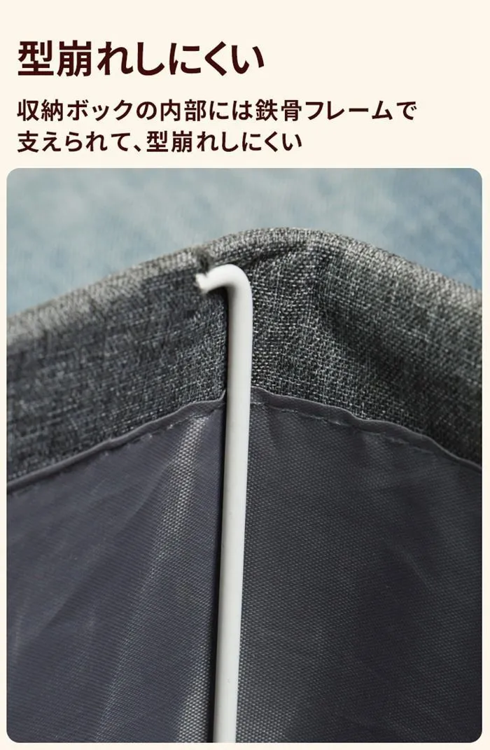 収納ボックの内部には鉄骨フレームで支えられて、何個の収納ボックスを積み重ねても形が崩れず、しっかり自立もできます。