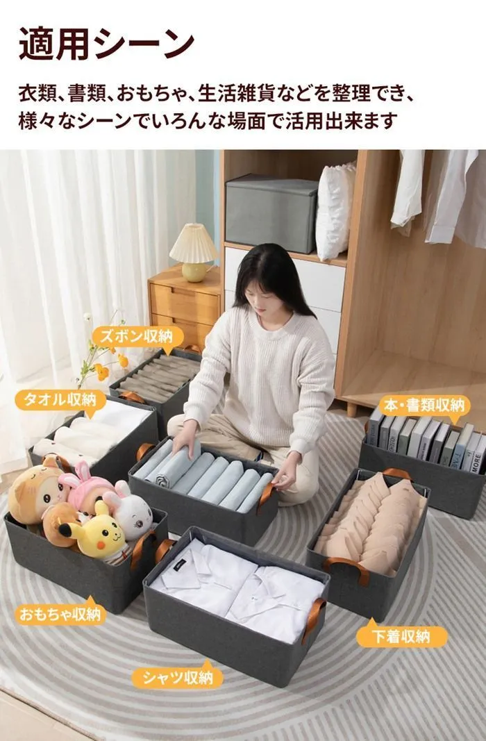 衣類、書類、おもちゃ、生活雑貨などを整理でき、用途が広くて;ベッドルーム、リビング、書斎、クロークルームなど、乱れる空間をきちんと片付けられる。様々なシーンでいろんな場面で活用出来ます。可愛い収納ボックスで家の物を収納することによって、部屋の整理整頓と美しさが保てられます。