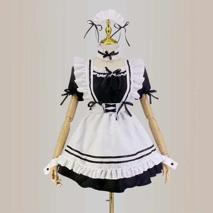 セット内容:ワンピース、エプロン、カチューシャ、チョーカー、モモ飾り*2、手首飾り*2