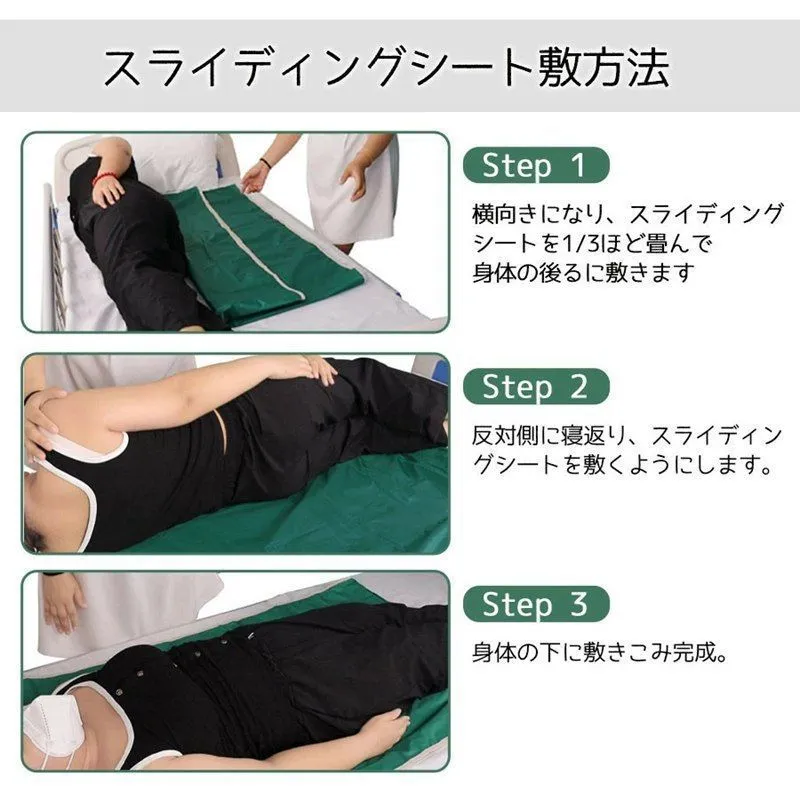 スライドシートを使うことで、要介護者の二次被害を避ける。また、1?2人で介護ができ、時間と労力が省けます。