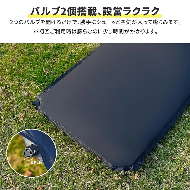 商品名:MOON LENCE エアーマット キャンプマット 極厚 8cm 自動膨張式 特大バルブ2個搭載 インフレーターマット 車中泊マット 車中泊 テント泊 キャンプ 防災 連結可能 収納袋付き ブラック