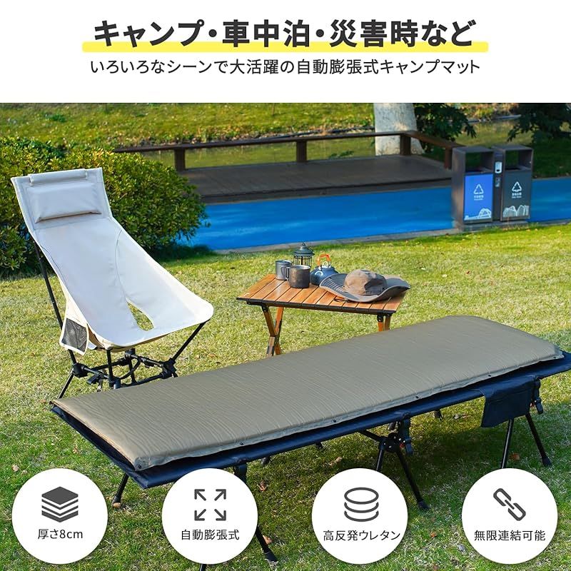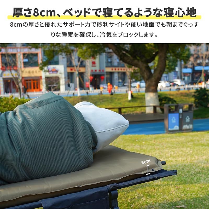 【様々なシーンに大活躍】寝袋の下に敷いて使って、快適に寝れます。お釣り、車中泊、オフィスに昼休みマット、山登り、バーベキュー、公園、坪、キャンプ、砂浜などのさまざまなアウトドアシーンで使えます。自分の部屋でも、ベットを使わずに床に敷いて寝ても、良い睡眠体験です。日常急な来客時の常備用品としてにも最適です。