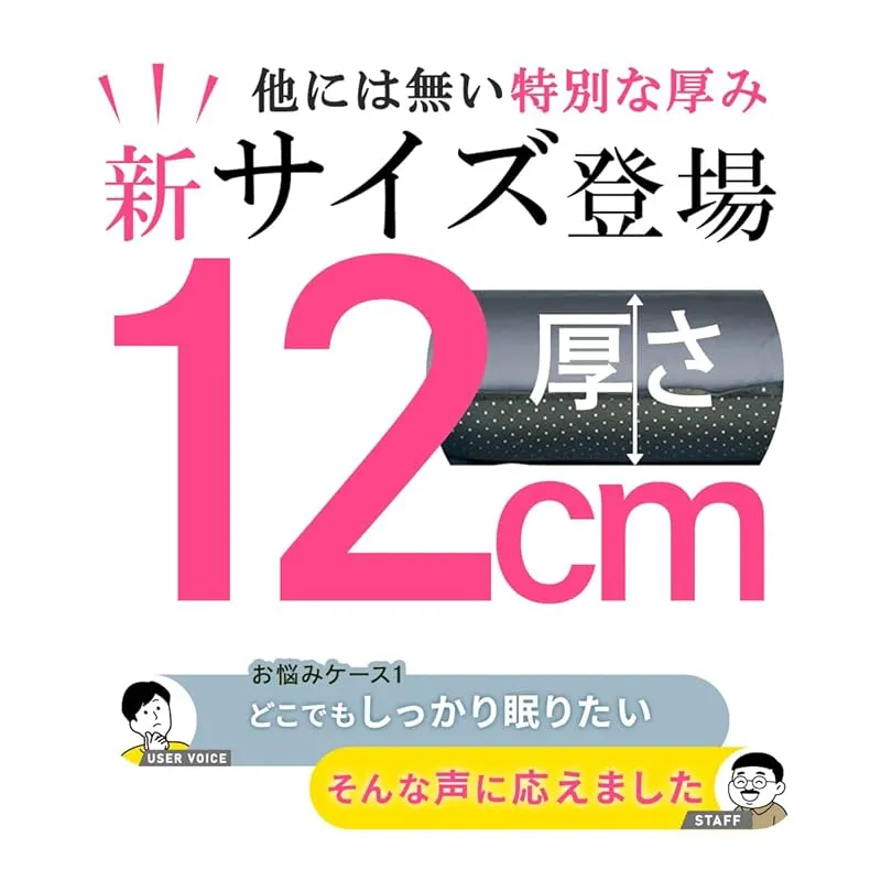 厚さ12cmの極厚高反発ウレタンで快適な寝心地を実現した車中泊マット。特大バルブで自動膨張し設営も簡単。車内の段差を解消し、キャンプや車中泊での睡眠の質を劇的に向上させます。裏面滑り止め加工済み。車中泊やオートキャンプに最適な極厚12cmキャンピングマット!表地は丈夫で肌触りの良いポリエステル素材、裏地には車内やテントでのずれを防止するドット加工。厚みがありながら大型ダブルバルブと高反発のウレタンで空気もすぐに入ります。