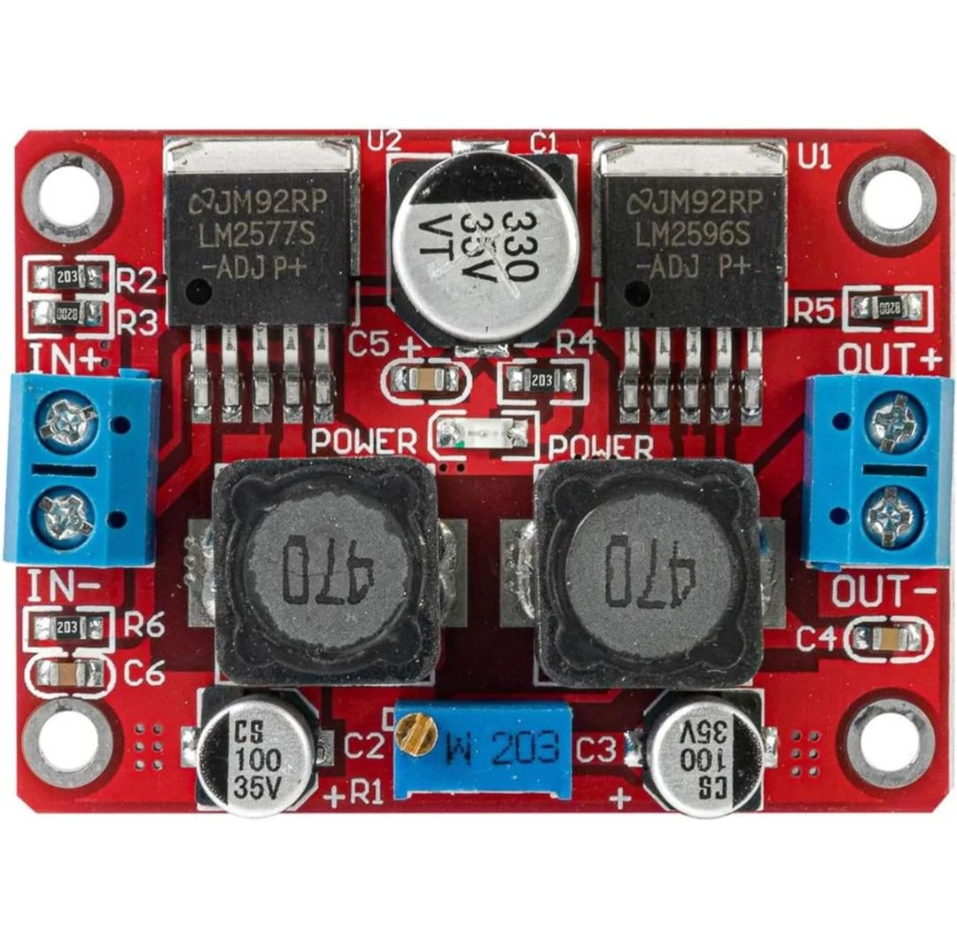 LM2577S+LM2596Sチップセットを備えた自動ブーストモジュールで電力調整を体験し、電子プロジェクトで一貫した電圧管理を実現します。