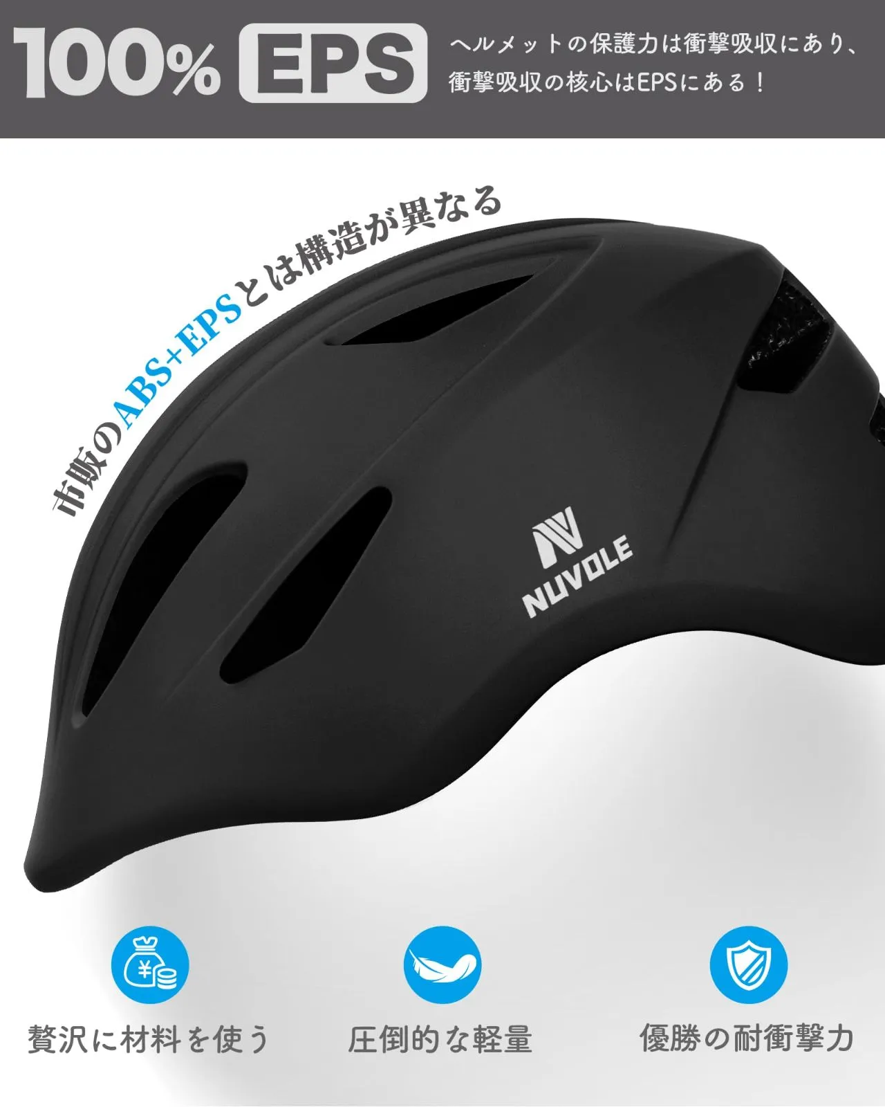 【日本子ども専用設計】NUVOLEの子供用ヘルメットは、革新的なアジアンフィットを採用して、市場にある抜群のフィット感を体験できるように設計されています。 欧米の楕円形ヘルメットより、NUVOLEアジアンヘルメットを選ぶメリットは以下のとおりです:①着用時のフィット感を向上させて痛みを軽減 ②適切なフィット感による安全性の向上 ③キノコ上にならないファッショナブルなシルエット。最高のフィット感を得られるよう、従来のヘルメットにはなかった調整システムやライナーの仕様を開発しました。