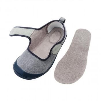 面ファスナーの着脱ベルトで間口が大きく広がり、履きやすく履かせやすい院内シューズです。カップ状のかかとが足をしっかりホールド。