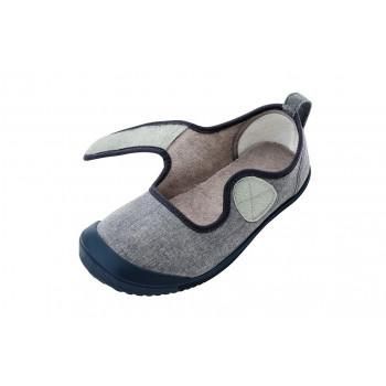 面ファスナー(マジック式)の着脱ベルトで間口が大きく広がり、履きやすく履かせやすい院内シューズです。カップ状のかかとが足をしっかりホールド。