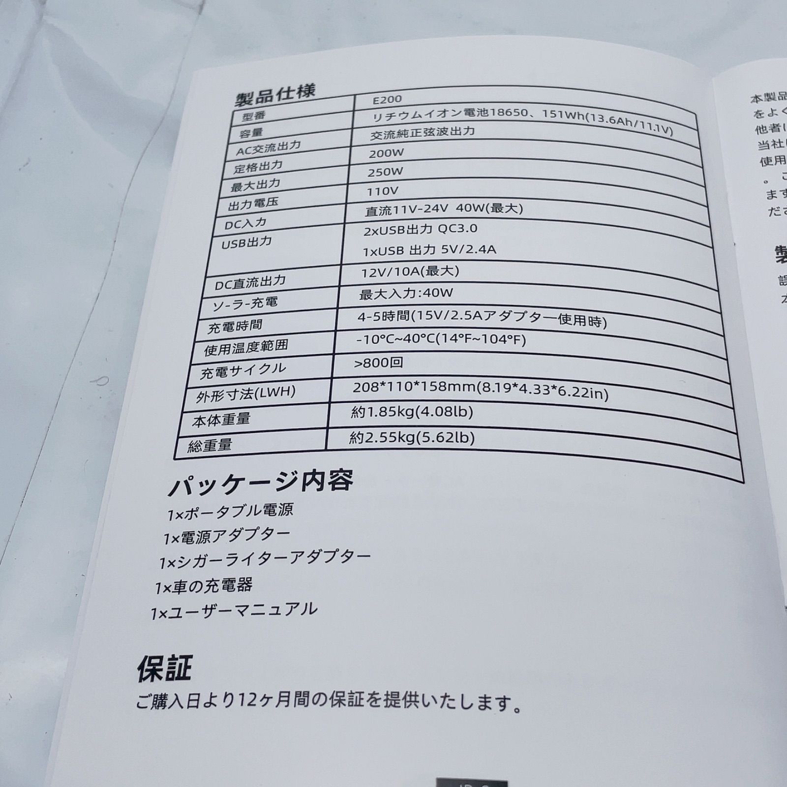 1×ポータブル電源
